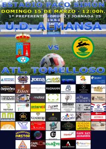El domingo, a las 12:00 horas, en el Paco Simón, la UD Almansa recibe al Atlético Tomelloso en el partido correspondiente a la 25ª jornada de liga en el Grupo 1 de 1ª Autonómica Preferente. Los almanseños, líderes en la clasificación, aunque empatados a puntos con el Manzanares, que es segundo, buscan mantener su posición privilegiada ante un equipo auriverde que necesita sumar para mantener sus opciones de luchar por los Play-Off de ascenso.